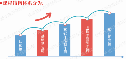 課程結構體系分為:認知篇-基礎學習篇-基礎作品制作篇—進階作品制作篇-知識拓展篇