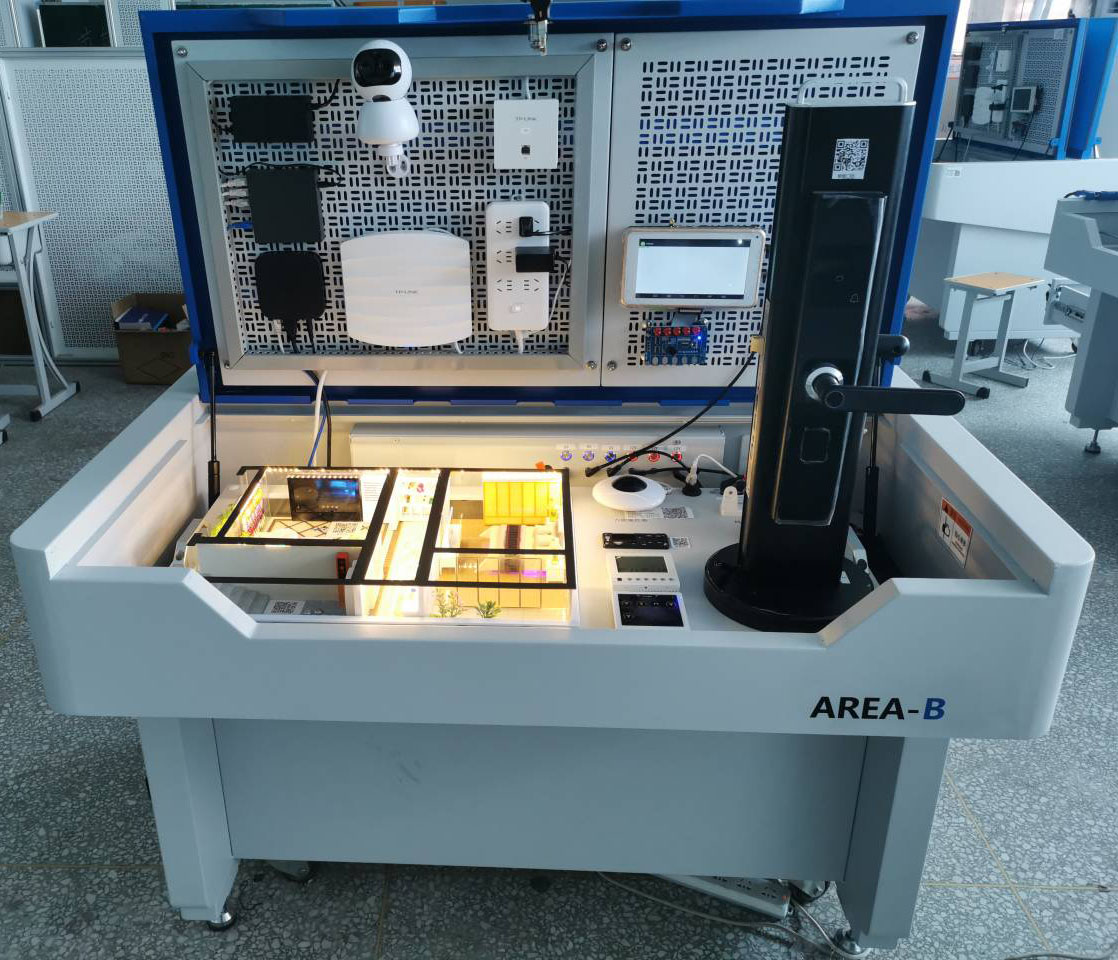 智能家居多功能實訓臺(型號:SeaIOT-FBox-01), 基于智能家居六大真實應用場景,包含市場主流產品、模塊、技術和工具,與智能家居工程師工作內容深度對接,實現“所學即所用”的目的。系統采用真實智能家居設備以及工業級傳感器模塊,場景更貼近實際應用,同時支持教學及實驗。既可用于實訓系統應用演示,又支持教學實踐開發。系統采用Zigbee,WiFi,藍牙等多種無線組網方式,安裝靈活,節省布線,穩定可靠,可實現遠程智能控制。 系統硬件集成智能門鎖、電動窗簾、家電遙控設備、視頻攝像機、安防監控傳感器等多種設備及模塊,可以靈活進行硬件設備擴展、軟件二次開發。